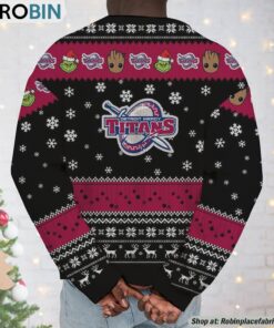 Get ready to redefine holiday cheer and sports spirit with our latest festive sweater that brings together two of pop culture's most beloved characters in an unexpected friendship. This unique piece combines the cuteness of a tiny galactic tree creature with the mischievous charm of a holiday classic, all set against a backdrop celebrating your favorite college team. Whether you're at a game or a holiday gathering, the sweater's vibrant design and whimsical theme will make you the center of attention, spreading smiles and showcasing your love for both sports and festivities. Don't miss the chance to own this limited-edition apparel that promises warmth, laughter, and plenty of double-takes!