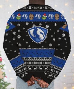 Prepare to spread holiday cheer with a delightful twist of fandom that combines the heartwarming innocence of Baby Groot and the mischievous charm of the Grinch. This uniquely styled holiday sweater is perfect for those looking to celebrate the festive season while showcasing their love for unexpected friendships and collegiate spirit. Whether you're lounging by the fireplace or attending an ugly sweater party, this vibrant, playful design is sure to spark conversations and smiles. Imagine the magic of Christmas morning or the excitement of game day wrapped in incomparable comfort. Offering a joyful mix of pop culture fun and holiday warmth, it's a must-have for any fan looking to add a cozy yet spirited touch to their seasonal wardrobe.