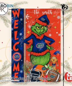 Transform your outdoor space into a festive haven that celebrates the holiday spirit and your love for college football with our uniquely designed garden flag. Perfect for fans of the Florida Gators, this vibrant garden decoration features a whimsical twist by incorporating a beloved holiday character, spreading cheer to every passerby. Customize the flag with your own name or a special message, making it a one-of-a-kind addition to your home. Whether it's for game day or the holiday season, this personalized flag seamlessly blends sports enthusiasm with Christmas charm, ensuring your outdoor display stands out in style.