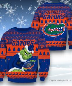 NCAA Florida Gators Grinch Christmas Ugly Sweater and Sweatshirt details