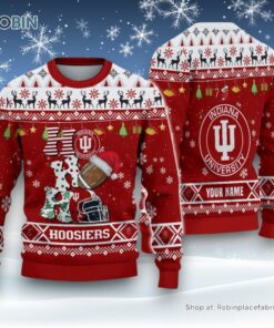 NCAA Indiana Hoosiers HO HO HO Ugly Christmas Sweater and Sweatshirt details