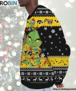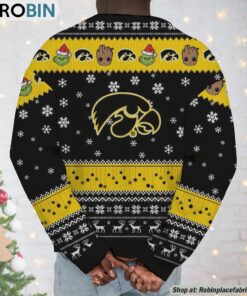 Embrace the magic of the holiday season with a delightful twist of pop culture nostalgia and collegiate pride. Imagine Baby Groot's infectious charm teaming up with the Grinch's whimsically mischievous spirit, adorned in your favorite team's colors. This unique sweater is more than just holiday apparel—it's a celebration of unexpected friendships and team loyalty, wrapped in a festive design that’s sure to spark conversations. Whether you’re gathering for holiday parties or cheering on the game, this sweater is your go-to for warmth, style, and a touch of whimsical holiday cheer. Perfect for fans of all ages, it's a standout piece that effortlessly combines holiday festivity with a playful nod to beloved characters, making it an ultimate festive favorite this season.