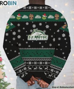 Get ready to embrace the holiday spirit with a touch of adorable whimsy and team pride! Our latest sweatshirt and sweater feature an unforgettable duo: Baby Groot and the Grinch, united as best friends, decked out in festive cheer. Not only is this garment perfect for ugly Christmas sweater parties, but it's also a unique way to showcase your love for Le Moyne Dolphins. Cozy, stylish, and irresistibly fun, this limited-edition piece is the ultimate holiday must-have for any fan looking to spread joy and team spirit this season.