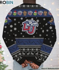 Unleash the holiday spirit this season with a unique twist on festive fashion! Imagine a sweatshirt that not only celebrates your love for the Liberty Flames but also brings together two iconic characters, Baby Groot and the Grinch, in an unlikely, adorable friendship. This quirky, heartwarming design captures all the whimsy and cheer of the holidays, making it the perfect attire for any fan looking to make a bold, merry statement. Feel the warmth, both literally and figuratively, as you showcase your team pride and holiday spirit in unparalleled style.