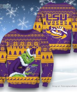 NCAA LSU Tigers Grinch Christmas Ugly Sweater and Sweatshirt details