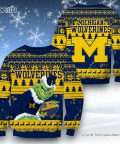 NCAA Michigan Wolverines Grinch Christmas Ugly Sweater and Sweatshirt details