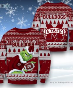 NCAA Mississippi State Bulldogs Grinch Christmas Ugly Sweater and Sweatshirt details