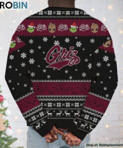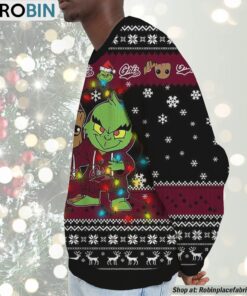 Unleash the festive spirit this holiday season with our uniquely charming sweatshirt and sweater that brings together your love for adorable characters and team pride! Featuring an imaginative blend of pop culture and collegiate spirit, this cozy apparel showcases two of your favorite mischievous icons, Baby Groot and the Grinch, in a delightful design that's perfect for holiday gatherings, ugly sweater parties, or cozy nights in. A must-have for fans of whimsy and wit, it’s the perfect way to celebrate the joyous season while supporting your beloved team. Crafted for comfort and style, this standout piece delivers a heartwarming blend of humor, fandom, and festive cheer.