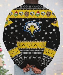 Embrace the festive spirit with an irresistibly quirky and unique holiday apparel that's bound to capture attention and spread cheer! Our ugly Christmas sweatshirt and sweater offer an enchanting blend of humor and warmth, featuring the unlikely duo of Baby Groot and the Grinch as best friends. This piece is perfect for cozy winter gatherings, showing off your playful side while also showcasing your love for the Morehead State Eagles. Combining pop culture icons with team pride, it's more than just an outfit—it's a conversation starter and a surefire way to make merry memories this season. Dress yourself in this whimsical winter wear and celebrate the holidays with a touch of geeky fun and collegiate enthusiasm!