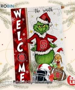 NCAA NC State Wolfpack Football Grinch Welcome Christmas Garden Flag Custom Name