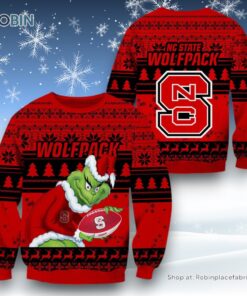 NCAA NC State Wolfpack Grinch Christmas Ugly Sweater and Sweatshirt details