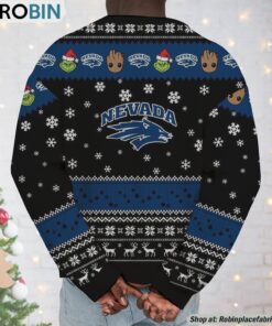 Get ready to celebrate the holiday season in style with a sweatshirt that perfectly blends fandom and festive flair! This unique and playful design features two of your favorite characters—Baby Groot and the Grinch—teaming up in an unforgettable festive friendship, all while representing the Nevada Wolf Pack spirit. Perfect for holiday parties, cozy nights in, or as a standout gift, this sweater brings together humor, warmth, and team pride. Enveloped in traditional "ugly" Christmas charm, it's a delightful mash-up that's sure to be a conversation starter and cherished addition to any wardrobe. Don't miss the chance to showcase your love for the holidays and your team with a look that's as unique as it is comfortable!