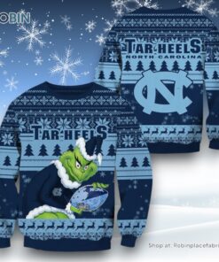 NCAA North Carolina Tar Heels Grinch Christmas Ugly Sweater and Sweatshirt details