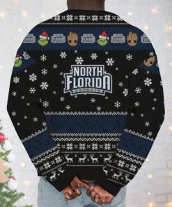 Step into the holiday season with a splash of whimsical charm and athletic pride, where iconic childhood memories meet collegiate spirit. Picture Baby Groot and the Grinch joining forces in an unlikely but perfect friendship, delivering festive cheer through their playful antics. This uniquely designed Christmas garment combines the beloved characters' lovable mischief with a tribute to North Florida's fervent supporters, crafting an unparalleled festive experience. Perfect for sporting events or cozy gatherings, embrace the season with this enchanting blend of fun, nostalgia, and team spirit, making it an ideal gift or personal treasure for anyone ready to celebrate the holidays in a truly unforgettable style.