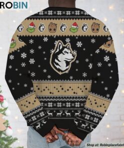 Prepare to spread festive cheer with the ultimate holiday attire that combines beloved pop culture icons and collegiate spirit with a delightful twist! This unique garment features an enchanting design spotlighting Baby Groot and the Grinch, two characters sure to bring a smile to any face. Perfect for fans of heartwarming friendships and the rich tradition of college sports, this sweatshirt and sweater make a wonderful gift or addition to your holiday wardrobe. Celebrate the season in style, showcasing true camaraderie and whimsical charm that'll turn heads at any festive gathering. Crafted for comfort and designed to impress, it's a must-have for anyone ready to embrace the joyous and lighthearted side of Christmas.