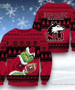 NCAA Northern Illinois Huskies Grinch Christmas Ugly Sweater and Sweatshirt details