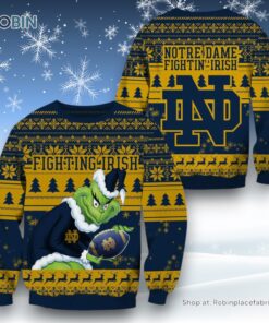 NCAA Notre Dame Fighting Irish Grinch Christmas Ugly Sweater and Sweatshirt details