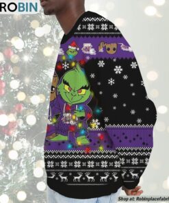 Step into the holiday season with a delightful blend of whimsical charm and team spirit! Our latest festive wear is a must-have for fans looking to celebrate in style. This unique piece features the irresistible duo of everyone's favorite mischievous Grinch and the lovable Baby Groot, set against a vibrant holiday backdrop. Perfect for holiday gatherings or cozying up on a chilly winter night, this sweater combines playful character designs with a nod to your beloved team. It's not just a piece of clothing; it's your gateway to spreading smiles and warmth this season, blending nostalgia with a snug, festive touch. Embrace the enchantment and let your Christmas wardrobe shine with iconic characters brought together for an unforgettable holiday experience.