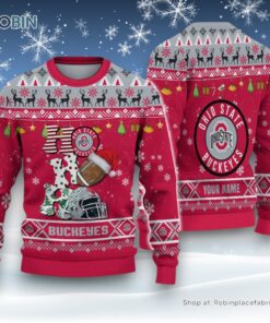 NCAA Ohio State Buckeyes HO HO HO Ugly Christmas Sweater and Sweatshirt details