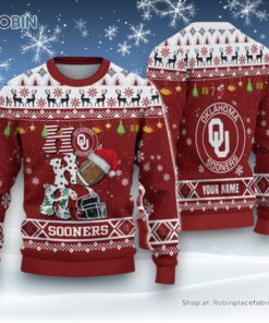 NCAA Oklahoma Sooners HO HO HO Ugly Christmas Sweater and Sweatshirt details