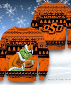 NCAA Oklahoma State Cowboys Grinch Christmas Ugly Sweater and Sweatshirt details