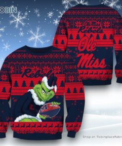NCAA Ole Miss Rebels Grinch Christmas Ugly Sweater and Sweatshirt details