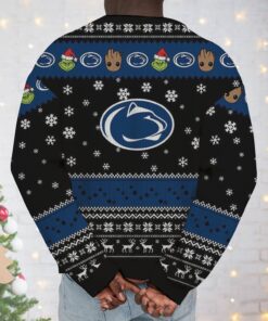 Step into the festive season with a delightful twist on holiday cheer and team spirit! This unique sweater showcases a heartwarming fusion of pop culture favorites, Baby Groot and the Grinch, celebrating their camaraderie while adorned in the iconic blue and white of your beloved Nittany Lions. Perfect for holiday parties, game days, or cozy nights in, this whimsical piece fuses fandom and festivity. It’s not just a sweater; it’s a conversation starter, a nod to cherished characters, and a symbol of college pride—all woven into one snug, stylish package. Get ready to embrace the season in a way that’s uniquely you!