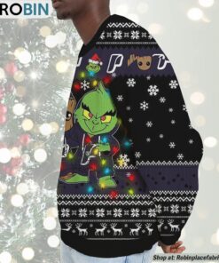 Get ready to spread some holiday cheer and team spirit with a cozy, festive twist! This one-of-a-kind sweatshirt brings together the lovable mischief of Baby Groot and the Grinch, all while showcasing your devotion to your favorite college team. Perfect for ugly sweater parties or just lounging by the fire, this delightful apparel blends humor, whimsy, and stylish comfort. Capture the festive spirit, share some laughs, and surprise friends with its unique charm. Whether as a personal treat or a thoughtful gift, it's a must-have for celebrating the season with warmth and personality.