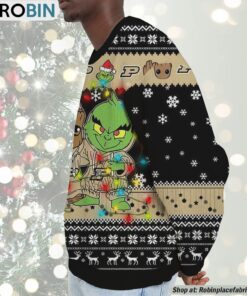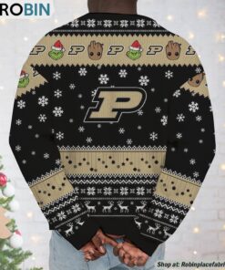 Celebrate the festive season with a unique blend of holiday cheer and team spirit! Our sweater features the beloved Baby Groot and the iconic Grinch, depicted as best friends, all while repping the Purdue Boilermakers. This eye-catching holiday apparel is not just for game day but perfect for every holiday gathering. It's the ultimate combination of comfort, fandom, and a dash of whimsical fun—guaranteed to make you the center of attention at any Christmas party!