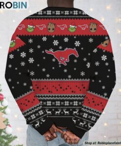 Get ready to bring festive cheer and a whole lot of fun to your holiday wardrobe with a unique twist! Our latest holiday sweatshirt and sweater feature an uproarious combination of beloved characters Baby Groot and the Grinch, united in an unlikely but heartwarming friendship. Perfect for SMU Mustangs fans, this eye-catching design doesn’t just celebrate team spirit; it adds a playful charm to your ugly Christmas sweater collection. Comfortable, stylish, and incredibly merry, this is your go-to attire for every holiday gathering!