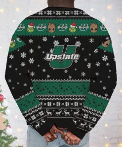 Unwrap the perfect blend of festive fun and team spirit with our adorable Christmas sweatshirt! Featuring the charming duo of Baby Groot and the Grinch as best friends, this delightful sweater captures the magic of the holiday season while celebrating your South Carolina Upstate Spartans pride. Perfect for holiday parties, cozy nights in, or cheering on your team, this unique and playful design ensures you'll stand out in any crowd. Embrace the season with style and warmth, making it an essential addition to your winter wardrobe. Don't miss out on spreading joy and fandom all at once!
