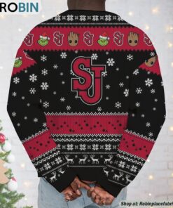 Get ready to add some festive flair to your holiday wardrobe with a sweatshirt and sweater that brings together two beloved characters in a delightfully whimsical design! This unique apparel features a heartwarming mash-up of Baby Groot and the Grinch, making it an unforgettable conversation starter at any holiday gathering. Perfect for fans of whimsical, playful designs and those who cheer for the Red Storm, this piece blends school spirit with a touch of holiday magic. Ideal for cozying up during the colder months or showing off your unique sense of style, this sweater is a must-have for your seasonal collection!