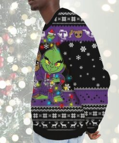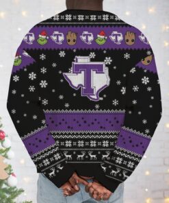 Get ready to add a dash of whimsy and school spirit to your holiday wardrobe with this extraordinary Christmas sweatshirt! Featuring an enchanting combination of Baby Groot and the Grinch, this unique design celebrates both festive cheer and your passion for the Texans. Perfect for fans of all ages, this sweater pairs playful graphics with cozy comfort, making it a standout choice for holiday parties, family gatherings, or just lounging around. Embrace the magic of the season while showcasing your team loyalty in the most delightful way possible!