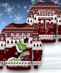 NCAA Texas A_M Aggies Grinch Christmas Ugly Sweater and Sweatshirt details