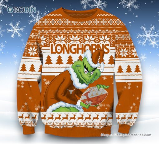 NCAA Texas Longhorns Grinch Christmas Ugly Sweater and Sweatshirt details