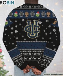 Embrace the holiday spirit with a touch of whimsical charm! Introducing the ultimate festive duo, combining everyone’s favorite Baby Groot and the mischievous Grinch, proudly decked out in UC Irvine Anteaters colors. Perfect for fans and families alike, this quirky sweatshirt and sweater unite pop culture and school pride in a cozy, attention-grabbing design. Whether you’re attending an ugly sweater party or cheering from the stands, you’ll be the toast of the holiday season with this unique ensemble.