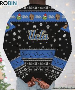 Unleash your festive spirit and showcase your team pride this holiday season with a truly unique and heartwarming wardrobe addition! Combine the whimsy of Baby Groot and the mischievous charm of the Grinch with bold UCLA Bruins flair, creating the perfect recipe for laughter, fun, and school pride at any holiday gathering. This cozy, eye-catching sweatshirt and sweater combo is sure to become a beloved staple in your festive wardrobe, turning heads and sparking conversations everywhere you go. Embrace the magic of the season and join the ranks of those who celebrate with style and originality.