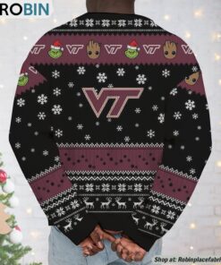 Get ready to celebrate the holidays in the most unique and heartwarming way possible with our latest holiday apparel! Combining the lovable Baby Groot and the mischievous Grinch, this festive sweatshirt and sweater are bound to make you the star of any Christmas gathering. Whether you're a Virginia Tech Hokies fan or just looking to spread some holiday cheer with a twist, this ugly Christmas sweater brings together the best of both worlds. Don't miss out on adding some quirky charm to your festive wardrobe!