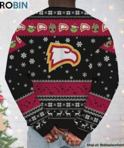 Get ready to elevate your holiday wardrobe with the ultimate festive piece, combining your favorite Christmas characters and your unwavering team spirit. This unique sweatshirt features the dynamic duo, Baby Groot and the Grinch, in a heartwarming portrayal of friendship that will melt even the coldest winter hearts. Perfect for fans of the Winthrop Eagles, this ugly Christmas sweater isn't just about spreading holiday cheer—it's about standing out with style and fun. Whether you're attending a holiday party or simply want to showcase your love for your team, this sweater is the ideal blend of whimsy and team pride. Don't miss out on making this season unforgettable!