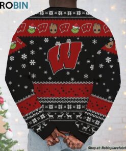 Get ready to stand out this holiday season with a sweater that combines festive fun and fan pride! Picture Baby Groot from Guardians of the Galaxy teaming up with the Grinch, all while you cheer on the Wisconsin Badgers. This unique ugly Christmas sweatshirt is the ultimate conversation starter at any holiday party. Made from cozy, high-quality materials, it's perfect for showing off your quirky style and team spirit in one go. Don't miss out on the most memorable and charming sweater of the season!