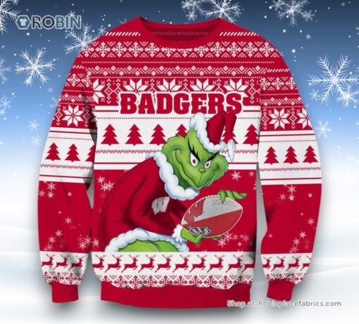 NCAA Wisconsin Badgers Grinch Christmas Ugly Sweater and Sweatshirt