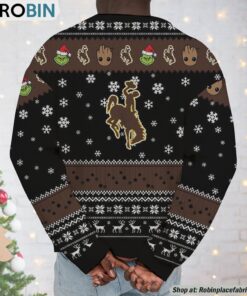 Step up your holiday cheer with an adorable twist this season! Experience a mash-up of festive fun and team spirit with a sweatshirt that combines the lovable charm of Baby Groot and the mischievous grin of the Grinch, all set against the Wyoming Cowboys backdrop. Perfect for fans of unique holiday attire, this cozy and eye-catching garment promises to make you the star of every Christmas party while showcasing your school pride.