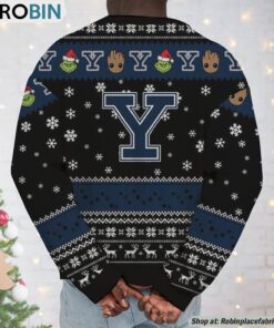 Get ready to spread holiday cheer with a unique, fun, and festive twist by celebrating the ultimate duo of holiday mischief—Baby Groot and the Grinch! This eye-catching, comfy Christmas sweater brings together your love for Yale Bulldogs and iconic pop culture characters, making it the perfect conversation starter at any holiday gathering. Whether you're curled up by the fire or out at an ugly sweater party, this one-of-a-kind piece ensures you'll celebrate the season in style and warmth. Perfect for fans of both the Bulldogs and these lovable characters, this sweatshirt is a must-have holiday essential!