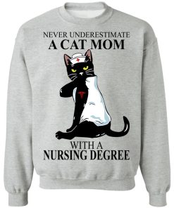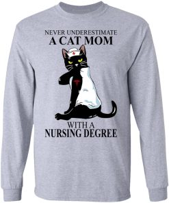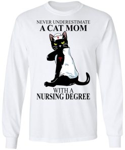 Never Underestimate A Cat Mom With A Nursing Degree shirt. Available in t shirt, long sleeve, tank top, hoodie, sweatshirt and multiple color. If you want in another color please contact us. Quality control before delivery. Print: Digital printing, colors won’t fade or peel. The design is printed with new age printing technology. It is printed with a water – soluble and eco – friendly ink. Treat yourself, or make this shirt the perfect gift on birthdays, anniversaries, holidays, or give a gift to friend, yourself, or family, or for no reason at all.