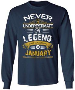 Never underestimate a legend born in January shirt. Buy it now, from $19.99 and $3.99 shipping. This shirt available in t shirt, long sleeve, hoodie and multiple color.