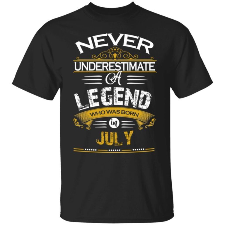 Never underestimate a legend born in July shirt. Buy it now, from $19.99 and $3.99 shipping. This shirt available in t shirt, long sleeve, hoodie and multiple color.
