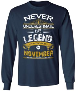 Never underestimate a legend born in November shirt. Buy it now, from $19.99 and $3.99 shipping. This shirt available in t shirt, long sleeve, hoodie and multiple color.