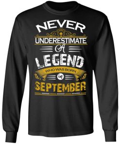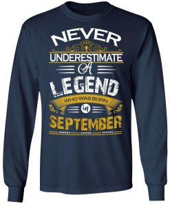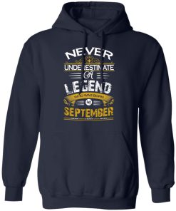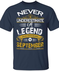 Never underestimate a legend born in September shirt. Buy it now, from $19.99 and $3.99 shipping. This shirt available in t shirt, long sleeve, hoodie and multiple color.