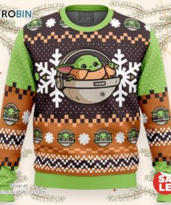Step into the holiday season with a touch of intergalactic charm and a sprinkle of festive flair with our delightful and whimsical sweater. Featuring the adored character that has captured hearts across the galaxy, this cozy apparel seamlessly blends the spirit of Christmas with the enchanting Star Wars universe. Perfect for holiday parties or cozy nights by the fireplace, it's an unforgettable piece that celebrates the magic of both Star Wars and the holiday season. Whether you're a fan of the series or just looking for a unique winter wardrobe addition, this sweater offers unparalleled charm and comfort, ensuring you stand out with style and a smile in every festive gathering.