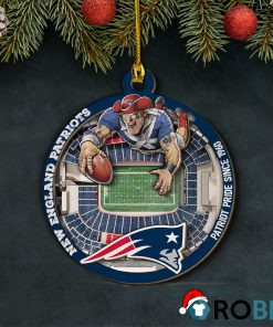 New England Patriots Football Mascot 2 Layered Wood Christmas Ornament